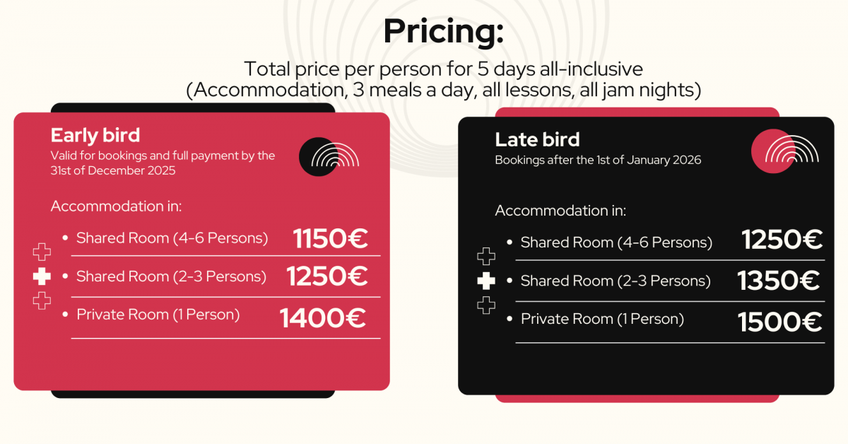 ✓ Unlimited participation at the night jams along with professional musicians